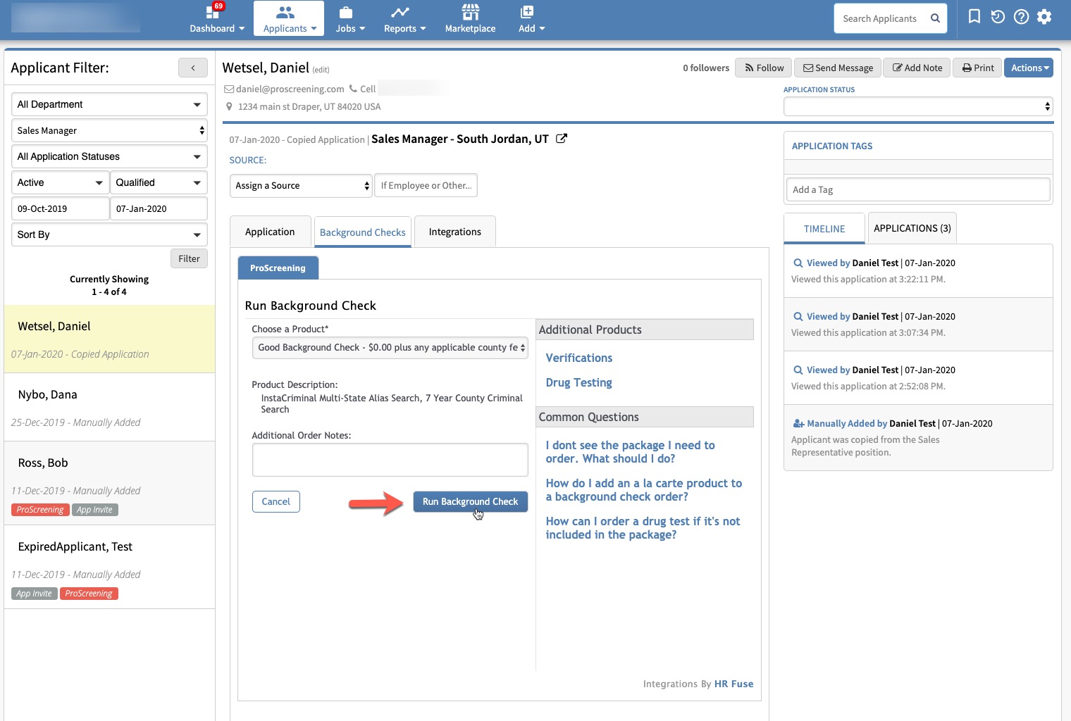 Each package will include a description. You can add any optional notes for the order. Click 'Run Background Check'.'