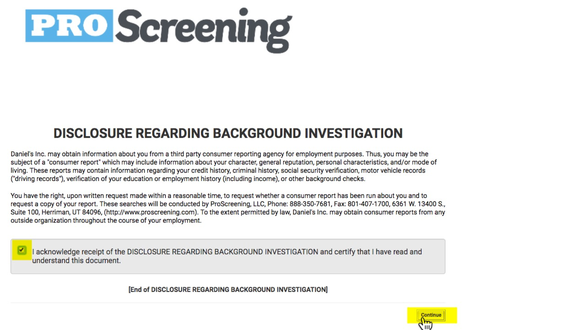 This is where the applicant is told what the background check can potentially include and how they can request a copy of their background check report.